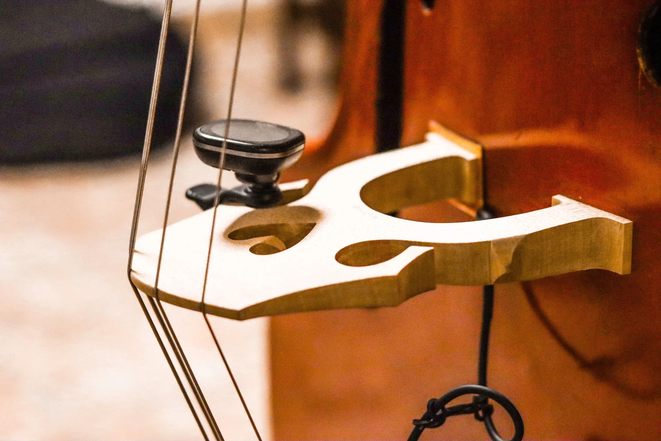He looked online. Every bass stand he found was the same thing: collapsible tripods, rubber-coated metal, utility-first designs made to disappear. Nothing that matched the instrument. Nothing that treated it like what it is — a piece of sculpture that happens to make sound.
